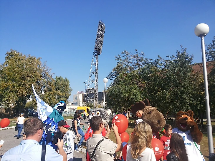 В прошедшую субботу прошло празднование восьмидесятилетия  ФК «Сибирь».  Организаторы праздника очень постарались и в целом им это удалось. Было много интересного.  Особое внимание публики привлекли талисманы.  На праздник к талисману футбольного клуба