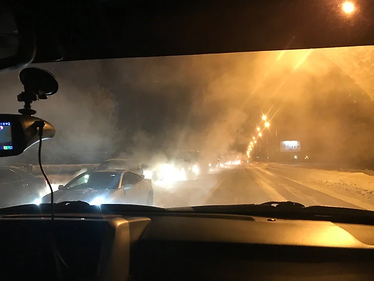 Дороги окутывает холодный белый пар – такая дымка вылетает из выхлопных труб автобусов. Пешеходы двигаются перебежками, чтобы согреться, на остановках стоят утепленные двумя-тремя слоями люди – из-под ватников выглядывает толстый свитер. Даже в утренней темноте полно огоньков и пробок. Автобусы с рабочими разъезжаются, многие едут на Самотлор – крупнейшее в России и шестое в мире нефтяное месторождение.