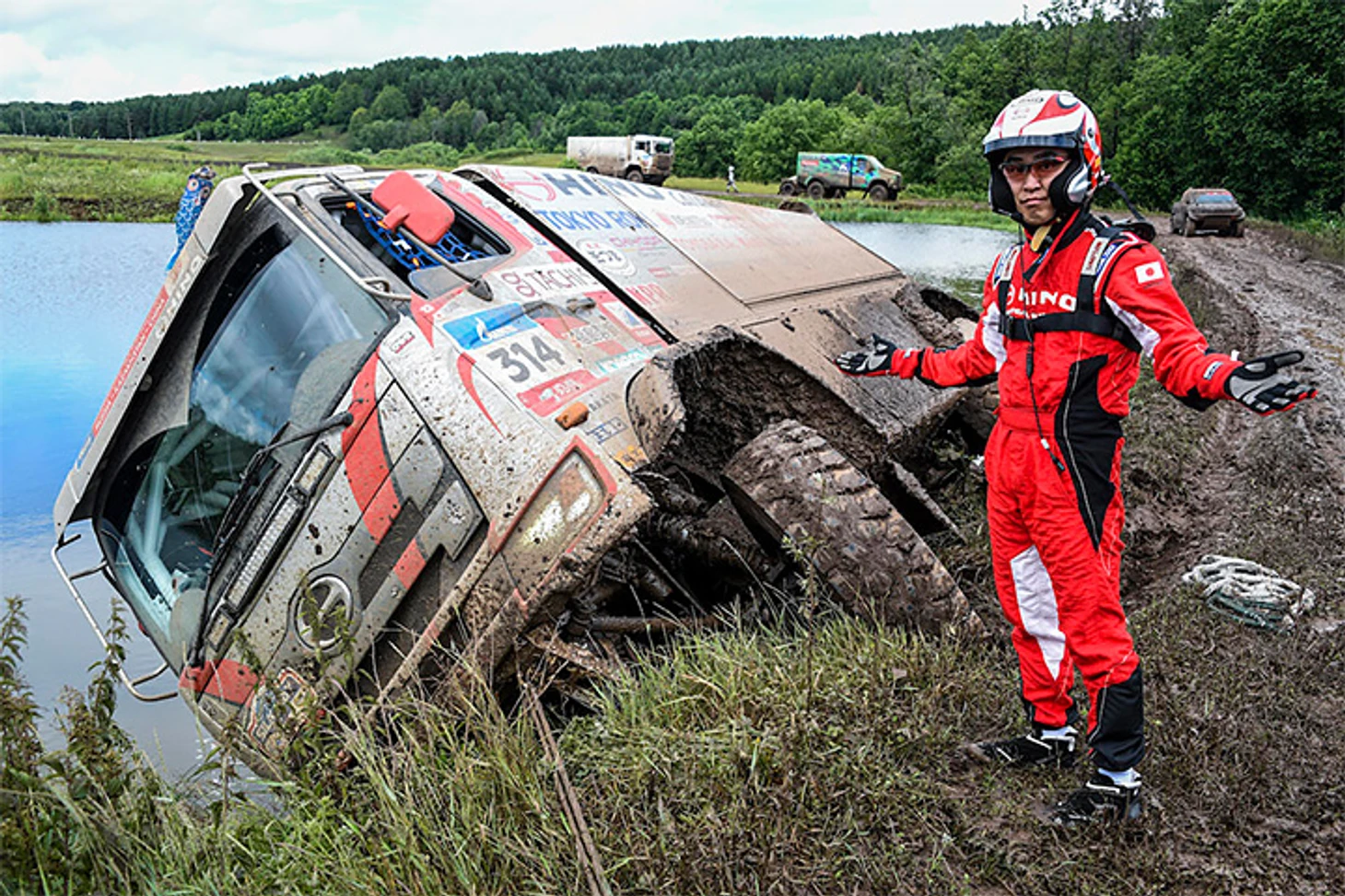 Сильные ливни превращают и так экстремальную трассу в непроходимое месиво, в котором вязнут даже грузовики. А размокшая глина, которая налипает на протекторы, делает машину неуправляемой в поворотах.