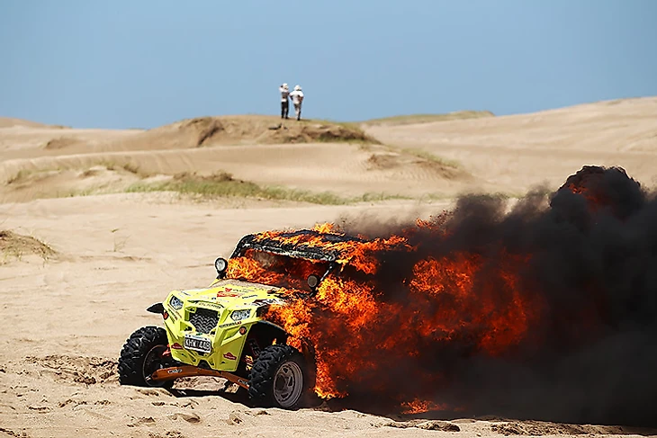В большинство современных рейдов и марафонов включают пустынные этапы, и на них машины сталкиваются не только с ужасающей жарой или радикальными перепадами температур. Широкую известность получили зыбучие пески, в которых даже внедорожник может легко увязнуть или вовсе утонуть. Чтобы такого не случилось, гонщики перед спецучастком спускают шины до двух атмосфер — дабы повысить окно сцепления и немного снизить давление. Однако это не всегда помогает, и машины приходится откапывать.