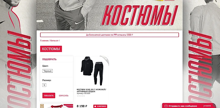 Перехожу на вкладку «костюмы» на сайте «Спартака»: