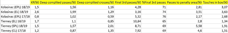 Вместо этого посмотрим на статистику Тирни в еврокубках за последние два сезона. В сравнении с Колашинацом можно представить, как она перенесется в АПЛ.