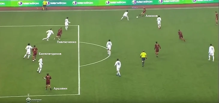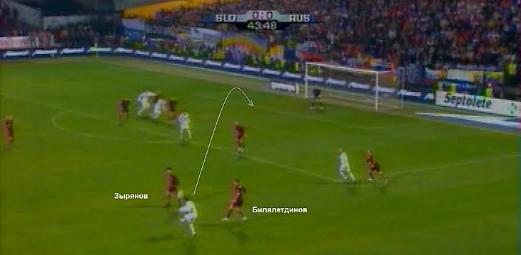Словенцы в Москве оборонялись в низком блоке и зачастую слишком узко — этим пользовались атакующие игроки сборной России. Они активно перегружали зоны и менялись позициями — в момент первого забитого гола Билялетдинов вообще оказался практически в центре штрафной.
