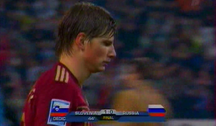 Аршавин, который вышел на правом фланге атаки, почти весь первый тайм пробегал в режиме голодомора — словенцы быстро прессинговали лидера сборной России, который иногда вынужден был уходить ближе к левому флангу, чтобы хоть как-то обострить игру. Когда Аршавин единственный раз за весь первый тайм вырвался на свободное пространство, сборная России сразу же заработала опасный штрафной, который закончился нокаутом Новаковича — Игнашевич своей пушкой чуть не снес форварду сборной Словении голову.