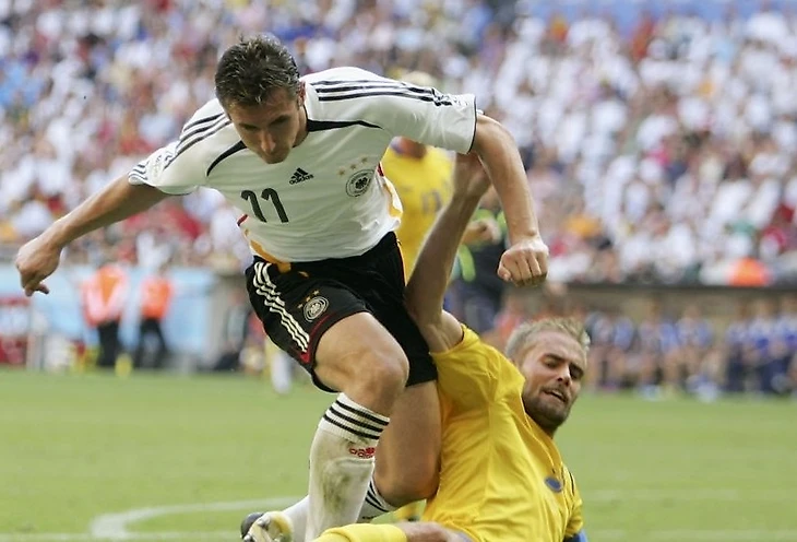 Впрочем, это было то немногое, что вообще можно было выделить по игре шведов в первом тайме. Сборная Германии с первых минут предложила сопернику высокий темп игры с активным прессингом и развернутой шириной атак — в начальной фазе немцы выстраивались в схему 4-2-4. В первые 15 минут шведы были просто смяты — Подольски оформил дубль, но ключевым исполнителем в этих эпизодах был Мирослав Клозе.