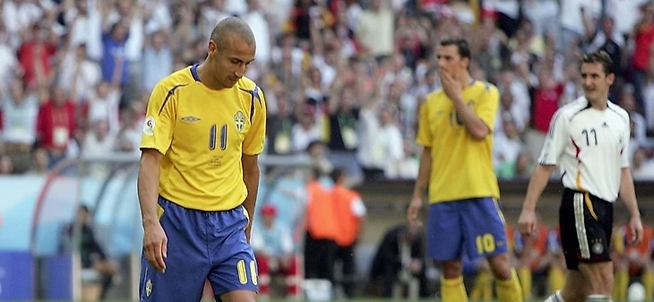 Впрочем, Златан Ибрагимович сдаваться не хотел — сообразил для себя момент, когда немцев выручил Леманн, тогда же после розыгрыша углового неплохо пробил Ханссон. Внезапно вдесятером шведы начали играть симпатичнее и более изобретательно, что ли. И этот тезис подтвердился — после перерыва шведы чаще встречались с мячом, а Ибрагимович придумал классный пас в центр штрафной на Ларссона, которого снес Метцельдер. Тут немецкий механизм, безотказно работавший в первые 45 минут встречи, все-таки дал сбой. Это был реальный шанс для шведов вернуться в игру, однако Хенрик Ларссон пробил выше ворот.
