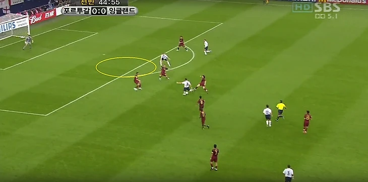 Вернемся снова в Гельзенкирхен — Эрикссон снял с игры Джо Коула и выпустил Крауча, форварда, который по своему типу кардинально отличался от Руни. Плюс Англия потеряла игрока в центре поля, где до этого добилась существенного контроля по ходу игры. Однако Португалия вовсе не побежала избивать оставшегося в меньшинстве соперника. Наоборот, команда Сколари все так же играла в режиме ожидания ошибок.