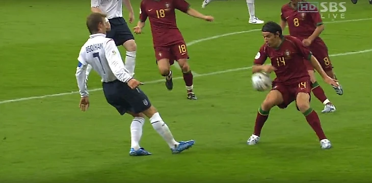 Сразу после этого Бекхэм в слезах покинул поле — в одном из предыдущих эпизодов он получил травму лодыжки в борьбе с тем же Нуну Валенте, побегал минут пять и попросил замену. Вместо капитана вышел Аарон Леннон. Это было последнее появление Бекхэма в качестве полевого игрока на больших международных турнирах. Забегая вперед, скажу, что на следующий день после игры с Португалией Бекхэм объявил, что складывает с себя полномочия капитана сборной Англии.