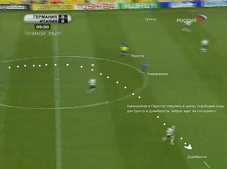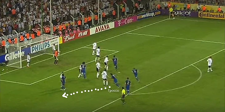 Даже в момент того самого гола передача Пирло не пошла бы в ту зону, не отскочи туда Гроссо после игры на ближней штанге.