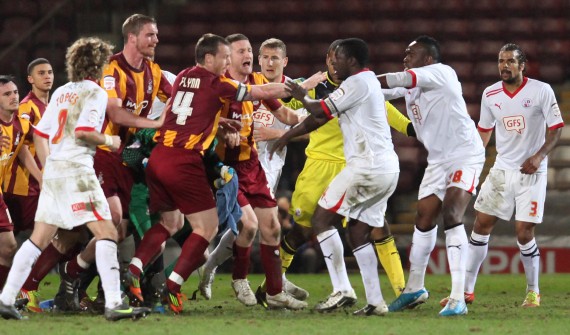 Первым, разумеется, красную карточку получил Эндрю Дэвис из «Брэдфорда». Ему грозит пятиматчевая дисквалификация, поскольку до этого матча у него уже были две красные карточки в этом сезоне.