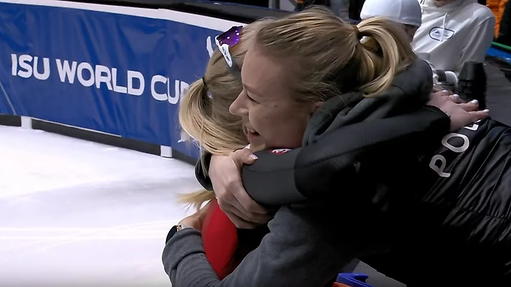 Посмотрим на соседа фигурного катания по ISU - шорт-трек, благо в нём есть примеры, которые могут опровергать этот постулат. В минувшие выходные в нидерландском Дордрехте завершился шестой и заключительный этап Кубка Мира-2019/20 по шорт треку, главным открытием которого стала 19-летняя польская спортсменка Камила Стормовская, которая взяла бронзовую медаль на дистанции 500 метров (в шорт-треке эта дистанция - особая. Время на ней - "техминимум" для главных стартов). При чем в полуфинале Стормовская обошла лидера команды Польши, чемпиионку Европы 2019 года, вице-чемпионку мира 2018 года и победительницу Кубка Мира-2018/19 на этой дистанции Наталию Малишевскую, которая получила пенальти. После забега спортсменки обменялись парой слов.