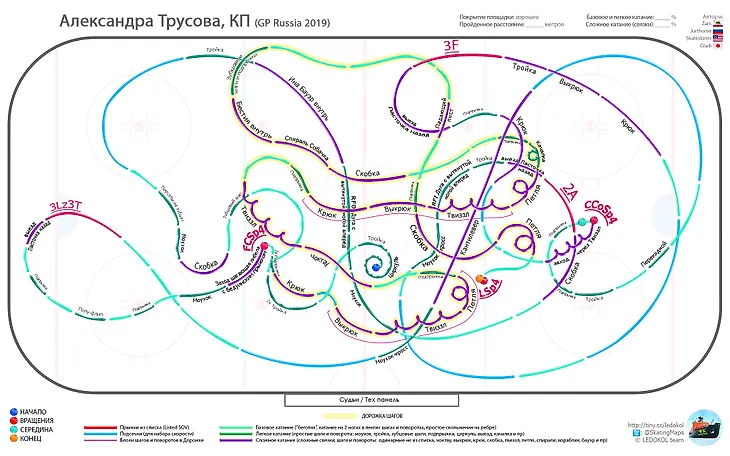 Автор Figure Skating Maps Александра Трусова. Хореографическая схема КП «Пер Гюнт»