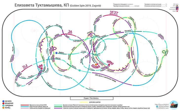 Автор Figure Skating Maps Елизавета Туктамышева. Карта короткой программы «Drumming song»