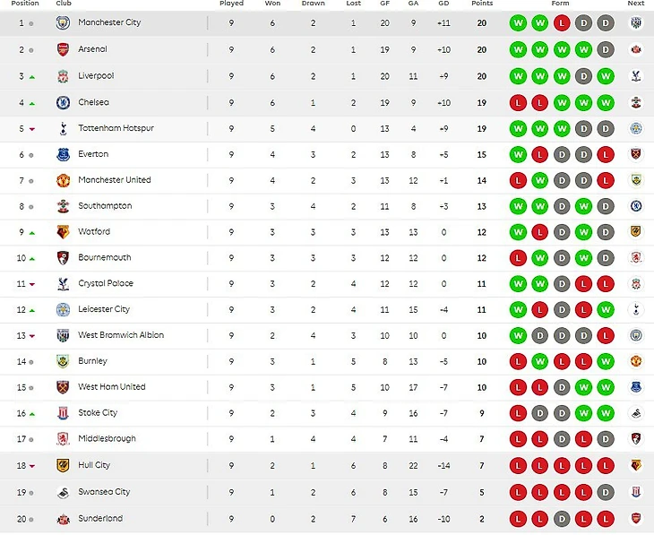 Великолепный Ливерпуль. Энфилд принимал Вест Бромович полсе МЮ. В отличии от предыдущей игры Клопп решил отказаться от Старриджа, ведь он был незаметен в начале недели. Как обычно, мерсисайдцы использовали высокий прессинг и контратаки. В отличии от Тоттнехэма, у хозяев есть очень креативные игроки, такие как Коутиньо и Фирмино, а также хороший сегальский исполнитель. После контратаки, Роберто перебросил защитников, а Мане реализовал момент. Вратарь гостей утром встал не стой ноги, и, возможно, с этой же ноги мяч срезался у него после выноса на игрока в красном, которой сбросил на Коутиньо. Бразилец не растерялся, убрал двух защитников и зажег цифру 2 на табло. К сожалению, мерсисайдцы не вынимали мяч из своих ворот только в одном матче (против МЮ), также они очень много пропускают со стандартов, а Вест Бром больше всех забил с угловых, так как имеет в своем активе двухметровых игроков. Соотвественно, "дроздам" понадобилось всего 2 угловых, чтобы воспользоваться преимуществом. Ливерпуль имеет 20 очков, столько же имеют Манчестер Сити и Арсенал.