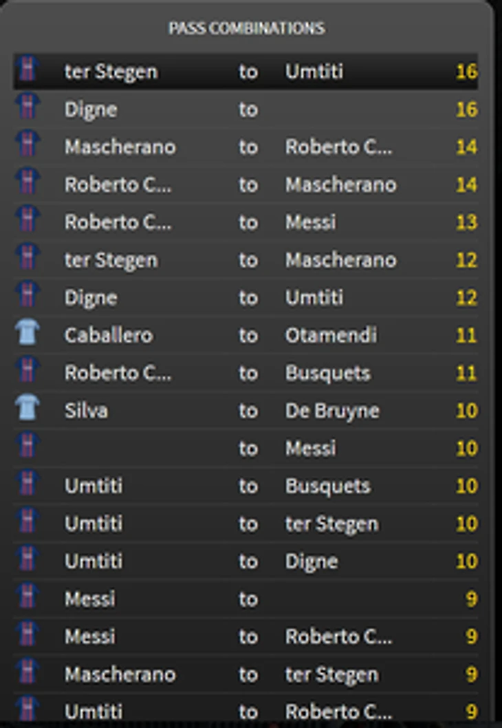 Когда Тер Штеген понял, что пасовать на защитников не надо, он стал пасовать в полузащиту, но они тоже не могли решить проблему выхода из обороны. Конечно же, если бы у Барселоны были бы Пике, Альба, а еще лучше Алвес (которого, конечно же не могло, быть в этом матче), то за счет своего опыта, они могли бы выходить из под этого давления. А Иньеста мог бы помогать организовывать атаки своим мастерством. Все эти травмы также сыграли Гвардиоле на руку. Не удивительно, что больше всего пасов в матче было между Тер Штегеном и Умтити.