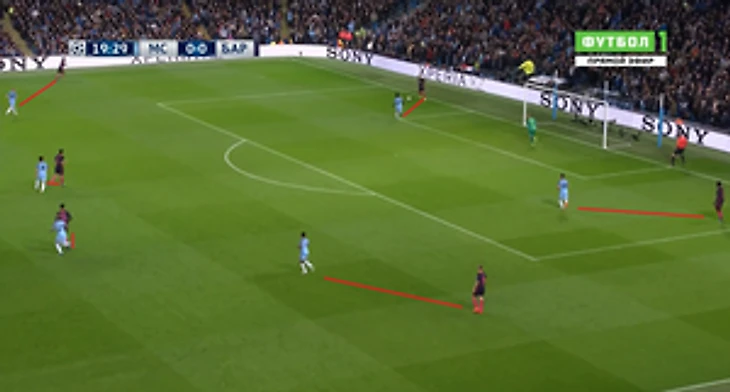 Также, из-за плохого построения игры Барселоны, «горожане» после перехвата имели очень много пространства для создания быстрых атак. Все свои самые опасные атаки Сити провел после таких случаев.