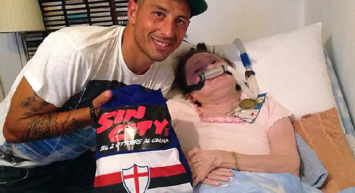 Возвращаясь к болельщикам – «Сампдория» не только пытается завоевать новые симпатии, но и бережно хранит старые. У команды есть верная болельщица Джованна Романато, которая родилась в один год с самой «Сампдорией» (1946). С 1956 года Джованна прикована к постели – в возрасте десяти лет она заболела полиомиелитом (спинномозговым параличом). Вакцины в те времена не существовало, инфекция поразила легкие Джованны, и вот уже 58 лет она жива лишь благодаря аппарату искусственной вентиляции легких, к которому ей приходится подключаться каждые два часа. Она болеет за «Сампдорию» на протяжении шестидесяти лет, потому что когда-то за Примаверу «блучеркьяти» играл ее брат Лино.
