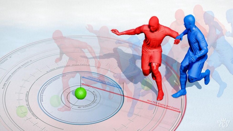 Также стоит отметить, что движение игроков с мячом станет другим. Понятие «привязки» мяча к ноге, уйдет в прошлое, что коренным образом повлияет на уровень мастерства, и конечно, реализм игры. Появятся такие факторы, которые ранее не учитывались. К примеру, "центр физической тяжести". Это позволит иначе взглянуть на борьбу, столкновения и т.д. В настоящем футболе не найти двух одинаковых игроков – у каждого своя манера игры, уровень техники и даже стиль бега, не говоря о скорости и мощи. Сочетание всех этих факторов в будущей игре будет сильно влиять на выход из той или иной игровой ситуации. В PES 2014 не будет копий знаменитых футболистов, ведь они уникальны. К примеру, мало кто знает, что объем бедер Роберта Карлоса позволял ему наносить мощнейшие удары по мячу, будучи спортсменом невысокого роста. Аналогично и физические данные многих защитников, позволяют им играть лучше других.