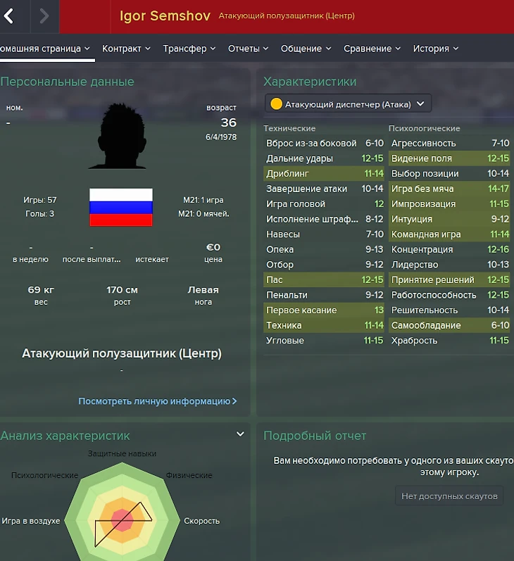 Футболисты, которых ваши скауты не очень хорошо знают, могут иметь вот такие забавные графики характеристик, а цифры скиллов будут скакать как сумасшедшие.