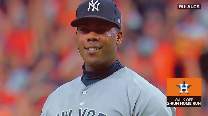 Следующим шагом был снова слайдер в верхний дальний уголок точно по страйковой зоне. Мяч слишком высокий и требующий нереальной силы, чтобы выбить его прямо на трибуны. Но Алтуве машет - и его ракета летит на 406 футов в левый центр аутфилда, приводя толпу болельщиков «Астрос» в экстаз! А выражение лица Чепмена в этот момент уже сравнивают с многогранный, но вовсе не веселой улыбкой Джокера в исполнении Хоакина Феникса. Эти кадры уже навсегда в истории бейсбольных игр плей-офф на подступах к Мировой серии.