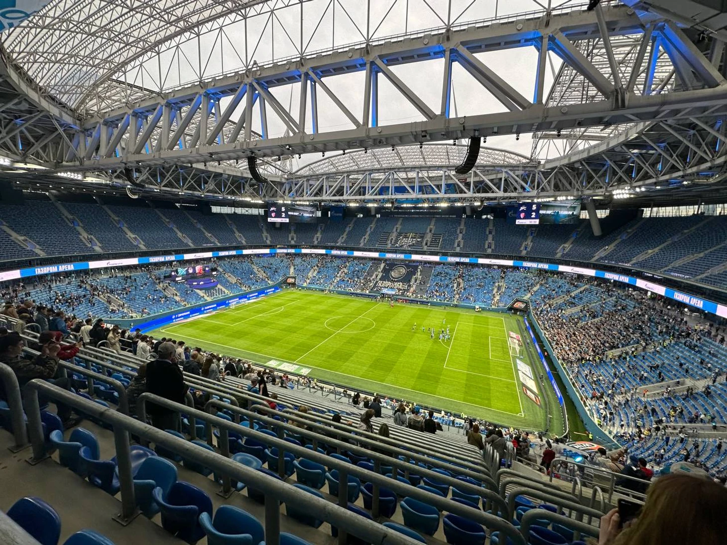 В перерыве, подталкиваемый общей массой, я вышел в коридор и направился купить воды. На верхнем ярусе не работал ни один киоск, поэтому пришлось спуститься вниз, и там было открыто несколько точек, в которых была большая очередь. Купив воду и пирожок, я решил пройти посмотреть на стадион с нижнего яруса, но меня остановил стюард, попросив показать билет, и всем видом показывал, что не даст мне насладиться видами «Газпром Арены», поэтому я смиренно вернулся к себе на место, и вскоре прозвучал свисток.