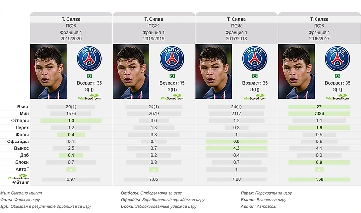 Проблема «Челси» в защите – отсутствие стабильности: как бы Фрэнк по-разному не сочетал игроков, привезти гол в ворота Кепы мог кто угодно, даже сам Кепа. Но сейчас не про вратарей. Силва абсолютно точно добавит стабильности, играя при любой схеме. Так, например, в схеме 3-5-2 (3-4-3) он спокойно займет позицию центрального защитника в центре тройки защитной линии, а более быстрые Рюдигер или Аспи встанут слева и справа от него. Вот его показатели в обороне за последние 4 сезона: