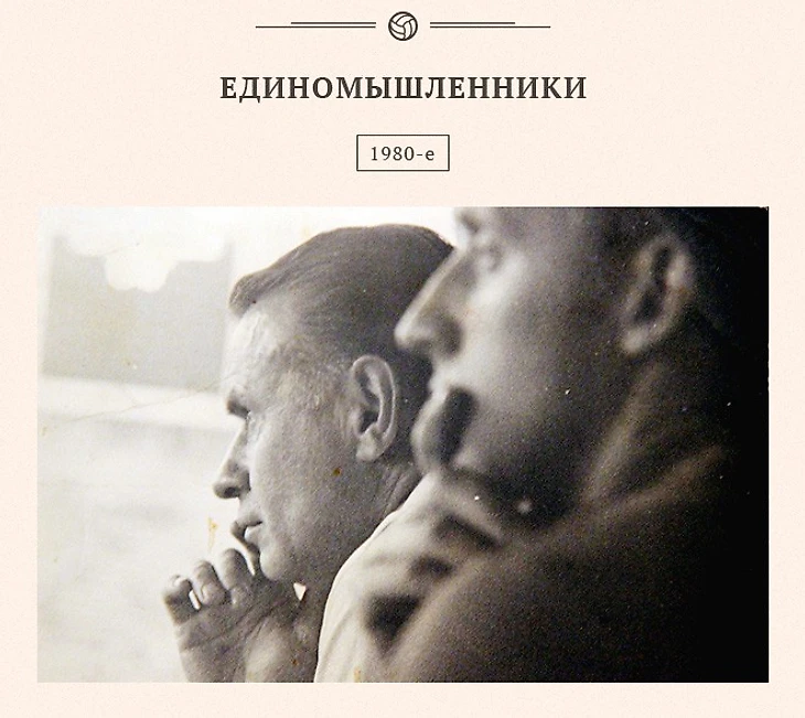 «С тестем Константином Ивановичем Бесковым, воспитавшим в отце настоящего профессионала своего дела. Они были настоящими единомышленниками в тренерском деле. Единственное, что их отличало, – характер. Бесков был пожёстче, но обоих объединяла страсть к игре, умение раскрывать талант и нетерпимость к хамству и невоспитанности в людях», — рассказывает сын.