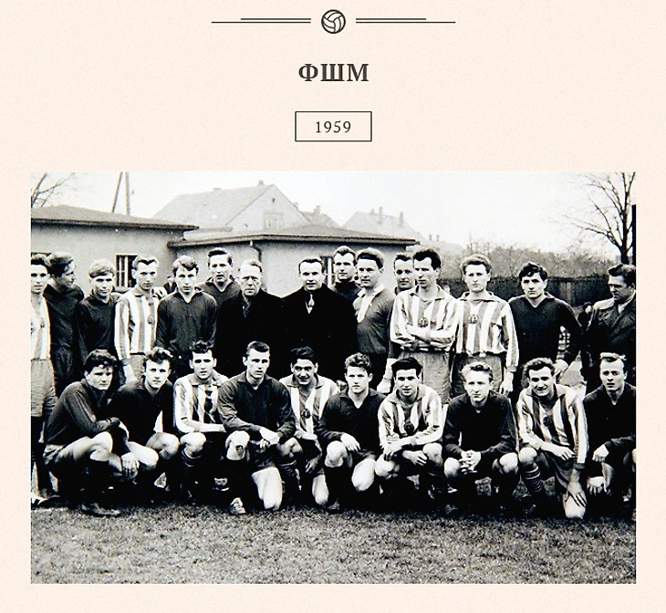 «В команде ФШМ под руководством Константина Ивановича Бескова (восьмой слева в верхнем ряду)».