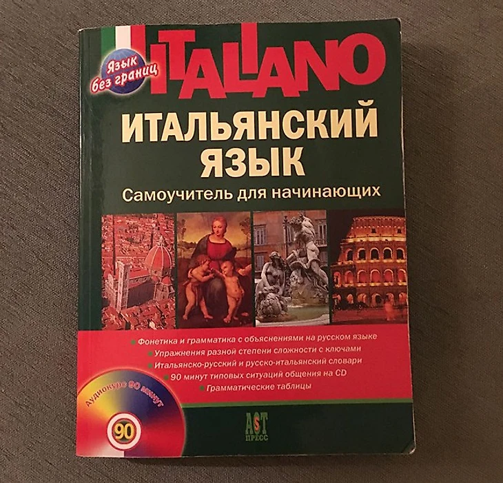 Впечатлил Кутепов. Выяснилось, что он прихватил не просто книгу, а самоучитель итальянского языка! Так что главному тренеру Каррере, его помощнику Риомми и защитнику Боккетти впредь нужно быть аккуратнее в выражениях. Теперь наивно полагать, что их никто не поймёт. Вот так выглядит самоучитель Кутепова.