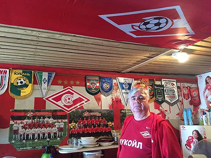 — Когда Советский Союз развалился, я работал у одного банкира на «Мерседесах», «Крузаках», «Брабусах». Страшновато было. С оружием ездили, пистолетами «Макарова». Раз в месяц ходили на стрельбище, официально всему этому учились. Применять-то оружие было не разрешено, но вот отстреливаться можно, если нападение. Был даже один случай, когда воры полезли на территорию дачи. Хорошо, никого не подстрелил. В начале 2000-х наш банкир (он ещё нефтью занимался) вовремя иммигрировал, а мой старый знакомый, спортивный фотограф Нечаев говорит: «В «Спартак» нужен водитель». Вот так всё и закрутилось. Я очень благодарен клубу. Со столькими людьми сошёлся. Вот, видишь?! Это футболка Феди Черенкова подписанная – чёрная, траурная.