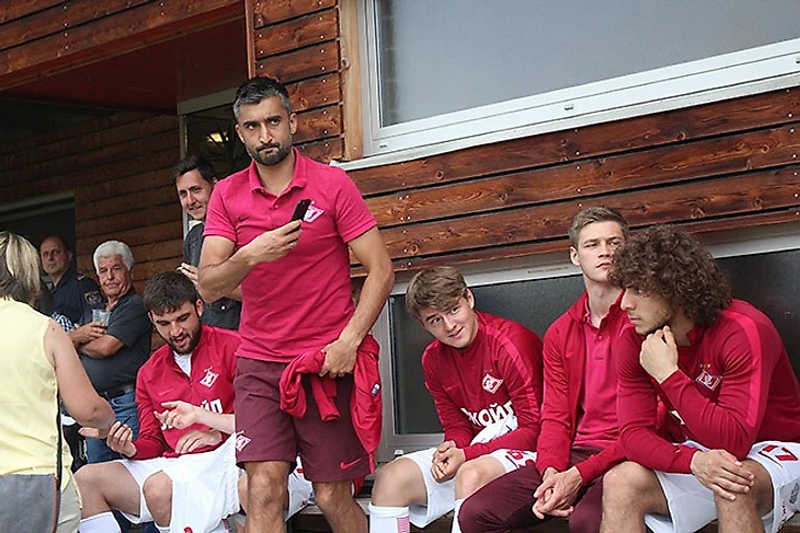 Надо сказать, зрительский состав был в пятницу как никогда представительным. Допускаю, что такого количества высоких гостей импровизированная VIP-ложа провинциальной арены ещё не встречала. Верхушка «Спартака» пожаловала на игру практически в полном составе. И если технического и генерального директоров клуба, соответственно Юхана Гераскина с Сергеем Родионовым, мы и на прошлом спарринге видели, то первое лицо клуба подлетело в Австрию специально под матч. Появление Леонида Федуна не осталось незамеченным несколькими российскими болельщиками. Леонид Арнольдович был благосклонен – никому из желающих ни в автографе, ни в совместном снимке не отказал. Где-то поблизости игру наблюдал Марко Трабукки, тоже личность в футбольных кругах известная, агент и функционер.