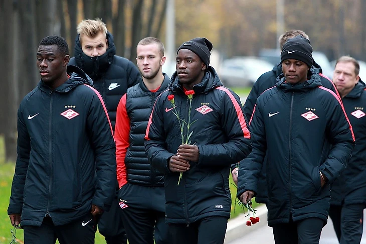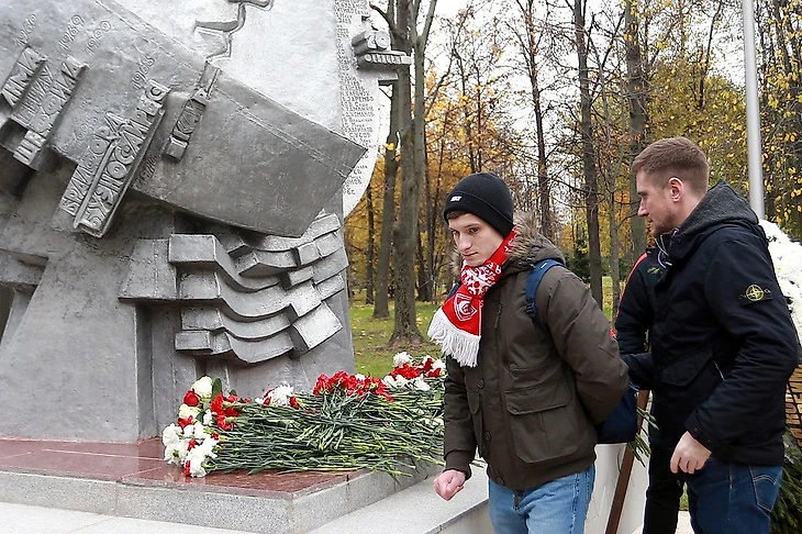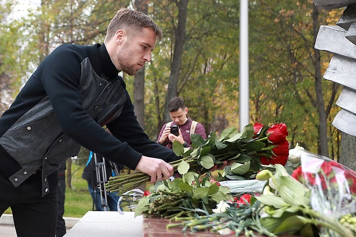 После минуты молчания руководство клуба вместе с футболистами возложили к мемориалу цветы: все красно-белые, как на подбор. Кто-то крестился, кто-то просто молча стоял и читал фамилии, выгравированные на памятнике.