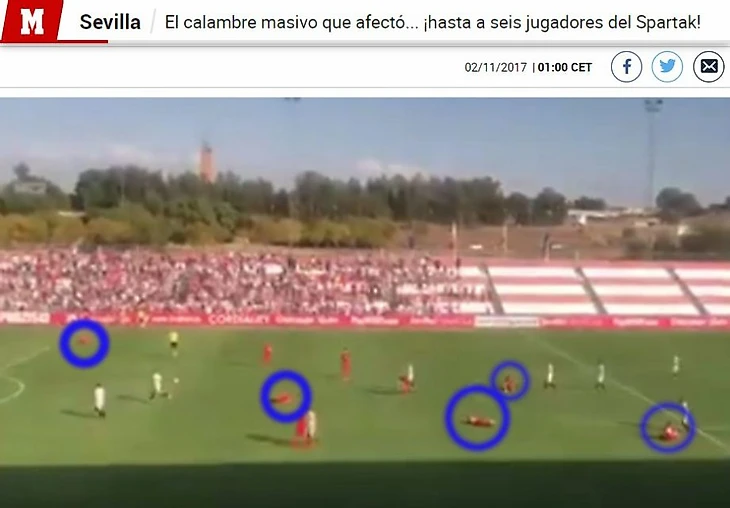 Испанскую Marca позабавило поведение спартаковских игроков, которые, сравняв счёт во втором тайме, бросились на газон, изображая, будто у них свело мышцы.
