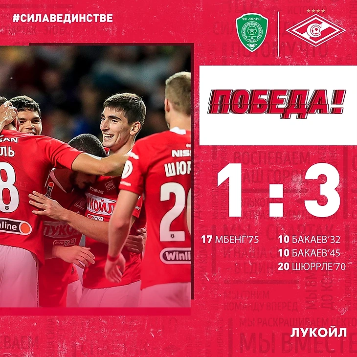«Спартак» победил в гостях «Ахмат» со счетом 3:1. Два мяча забил З.Бакаев.