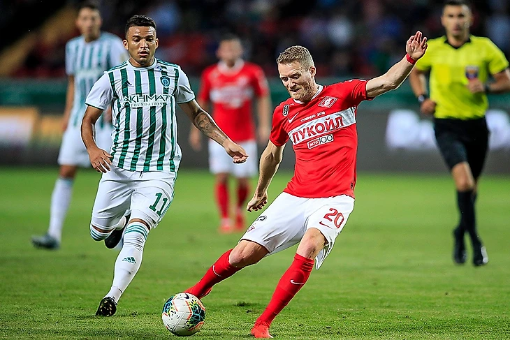 Впервые в нашем стартовом составе вышли новички — Джордан Ларссон и Гус Тиль. Швед занял позицию правого вингера, а голландец расположился в центе полузащиты в роли атакующего хавбека. В Швейцарии спартаковские легионеры успели провести несколько тренировок с новыми партнерами, но говорить о полном взаимопонимании, конечно, еще преждевременно. На месте дисквалифицированного Понсе с первых минут играл Шюррле, который до этого выходил лишь на замены. А роль левого вингера, как когда-то в спартаковском дубле и второй команде, исполнял Зелимхан Бакаев.