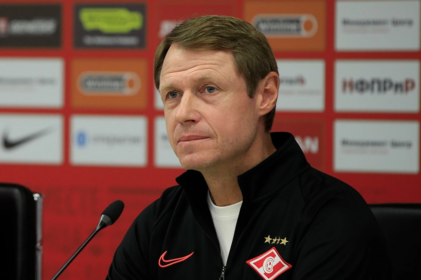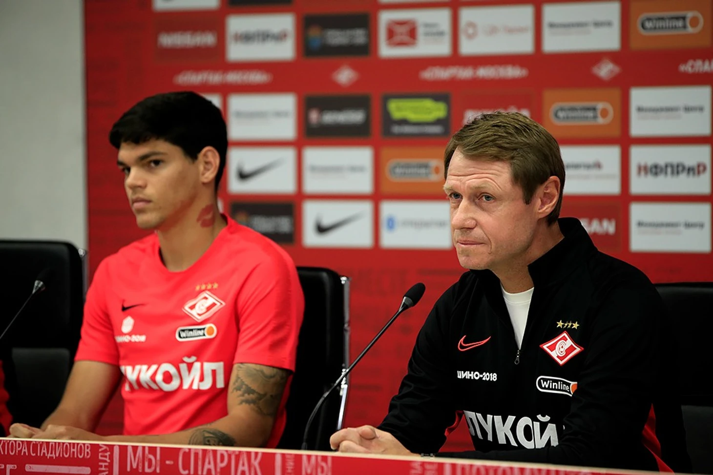 Пресс-конференция главного тренера «Спартака» и защитника красно-белых Айртона накануне ответного матча третьего отборочного раунда Лиги Европы против «Туна».