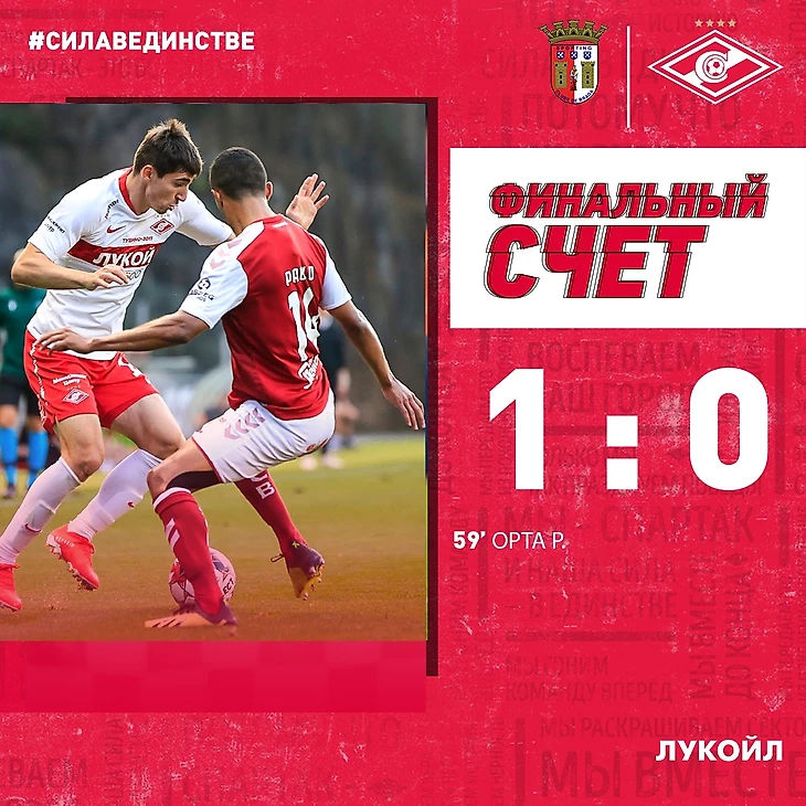 После перерыва команды заиграли живее. Опасно бил по воротам Мирзов, португальцы тоже старались не отставать в активности. Правда, до откровенно голевых моментов дело не доходило. В середине второго тайма Олег Кононов произвел первую замену, выпустив Мельгарехо вместо Мирзова, который очень увлекался индивидуальной и к тому же неэффективной игрой. А «Брага», тем временем, убыстрила темп, у спартаковцев стали появляться свободные зоны обороне. Вот так случилось и на 74-й минуте, когда португальцы спокойно прошлись, пробежались по левому флангу спартаковцев, последовала передача в центр и результатом всего стал отскок мяча от Орты. Максименко оказался бессилен. «Брага» повела со счетом 1:0. А «Спартак», похоже, уставал все больше и с трудом входил в концовку.