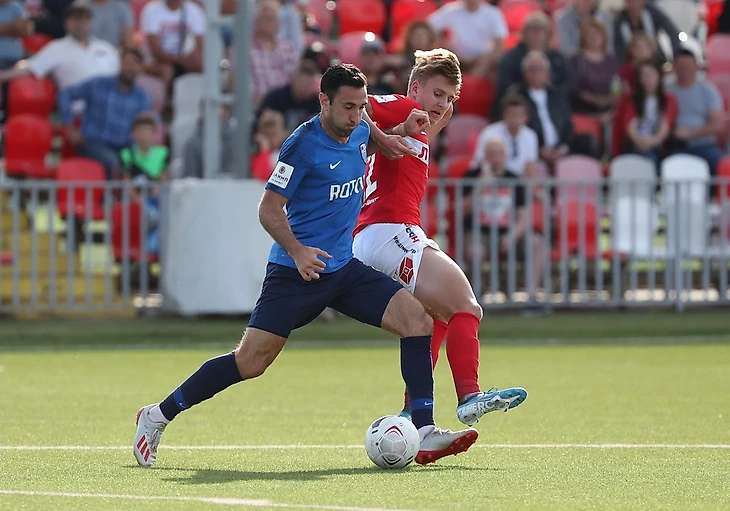 В стартовом составе красно-белых оказалось два игрока, которые накануне были в заявке основной команды на матч в Самаре и вернулись в Москву в час ночи. И если Игнатов регулярно выступает за «Спартак-2», то Мелкадзе впервые в этом сезоне сыграл за вторую команду. В первом тайме Георгий много брал игру на себя — часто шел на нескольких соперников, нанес несколько опасных ударов. В целом же первая половина оказалась весьма скудной на опасные моменты. Команды много владели мячом, предпочитая обостряющим передачам пасы поперек. Все атаки гостей сводились к подачам в штрафную, где в верховой борьбе традиционно был хорош Саная.