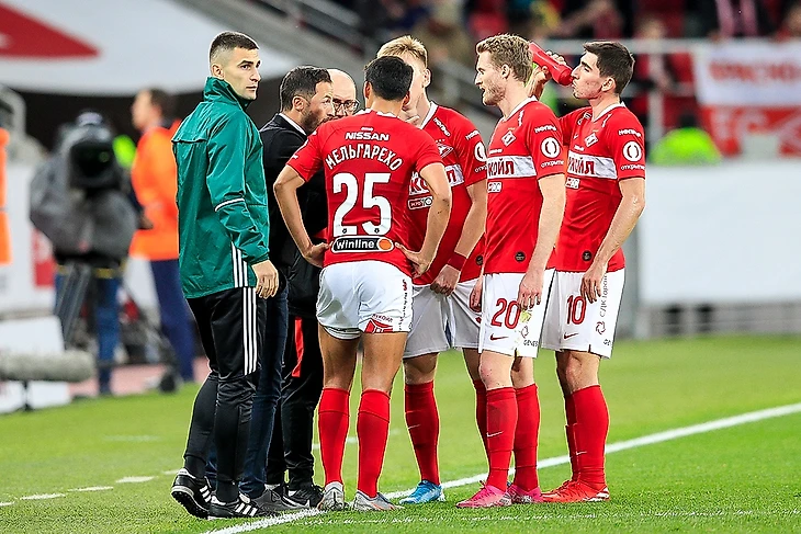 Пока таковых ни с лайнсменом, ни с резервным арбитром у Тедеско не замечено, зато при каждом удобном случае к нему подбегали игроки «Спартака» — посоветоваться по тактическим моментам. Они явно еще не успели выучить все требования нового главного тренера и нуждаются в регулярных подсказках прямо по ходу матча. Одно это говорит о том, что о футболе нового «Спартака» трудно рассуждать всерьез.