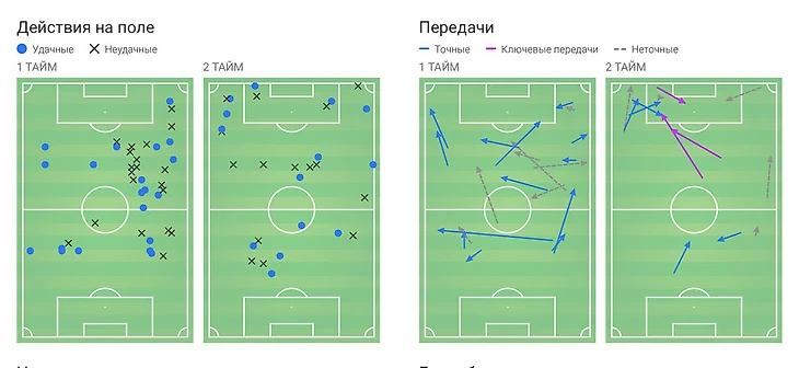 Однако, чтобы обвинять конкретно Бакаева в недоработках, необходимо знать тренерское задание. Может, от него не требовали опускаться в глубину и находиться при чужих атаках он должен был именно в свободной и относительно высокой позиции – для максимально быстрого разгона контрвыпада. В таком случае помогать опорником должен был кто-то другой, хотя Бакаеву с его позицией делать это было всяко проще.