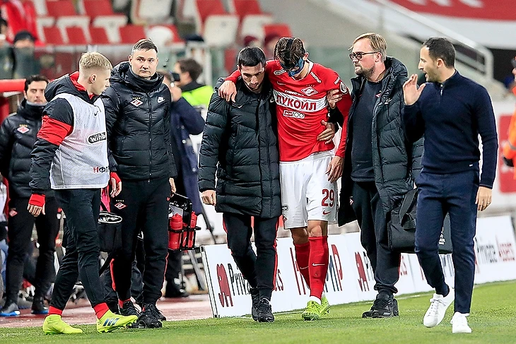 Спартаковцы за весь тайм создали только один мало-мальски опасный момент, когда в атаку подключился защитник Айртон. Ларссон сделал ему хорошую передачу, но защитник хозяев поля не смог пробить точно и вратарь «Арсенала» ликвидировал угрозу. Было понятно, что Тедеско должен делать какие-то выводы из столь неудачного тайма и предпринимать серьезные меры. Но уже в конце тайма он был вынужден заменить получившего травму Кутепова, выпустив на поле Умярова. А это предполагало новые тактические перестроения в игре спартаковцев.