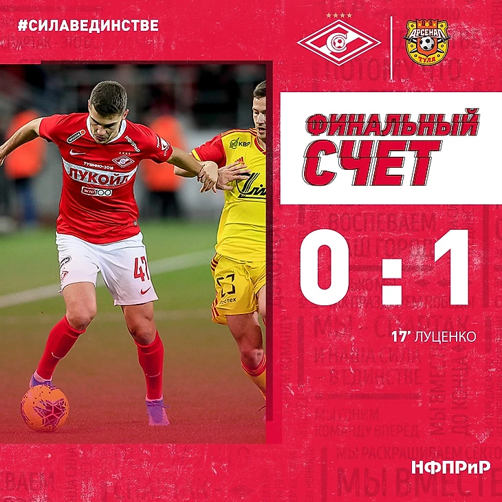 "Спартак" проиграл "Арсеналу" на своем поле - 0:1. Впервые в этом сезоне при новом главном тренере - Доменико Тедеско.