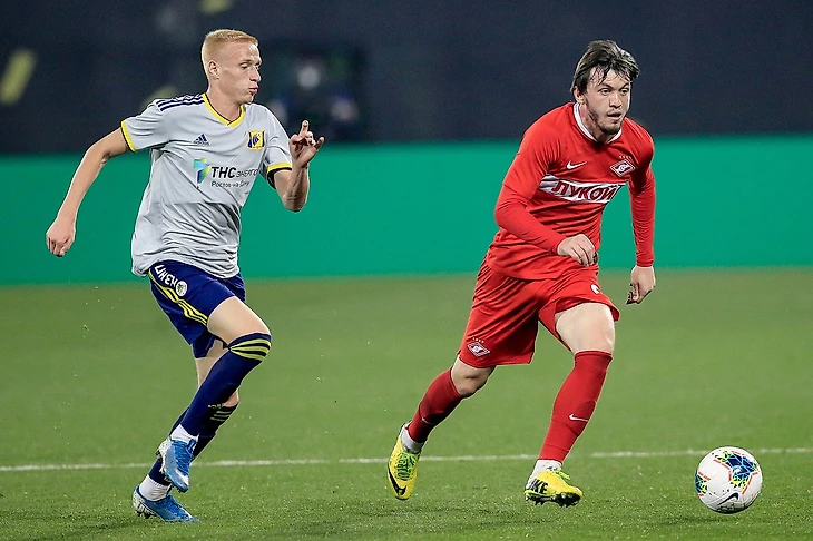 Наша команда вышла на поле в смешанном составе. Причем в двух таймах Доменико Тедеско задействовал 22 футболиста, выбрав схему с тремя центральными защитниками. До перерыва эту троицу составили Кутепов, Маслов и Джикия. В роли правого латераля выступил Рассказов, левого — Айртон. Тройку центральных хавбеков составили Зобнин, Гулиев и Никита Бакалюк.