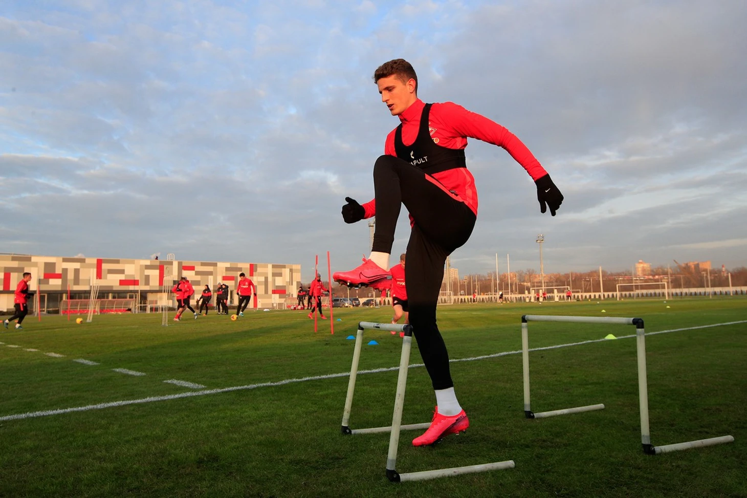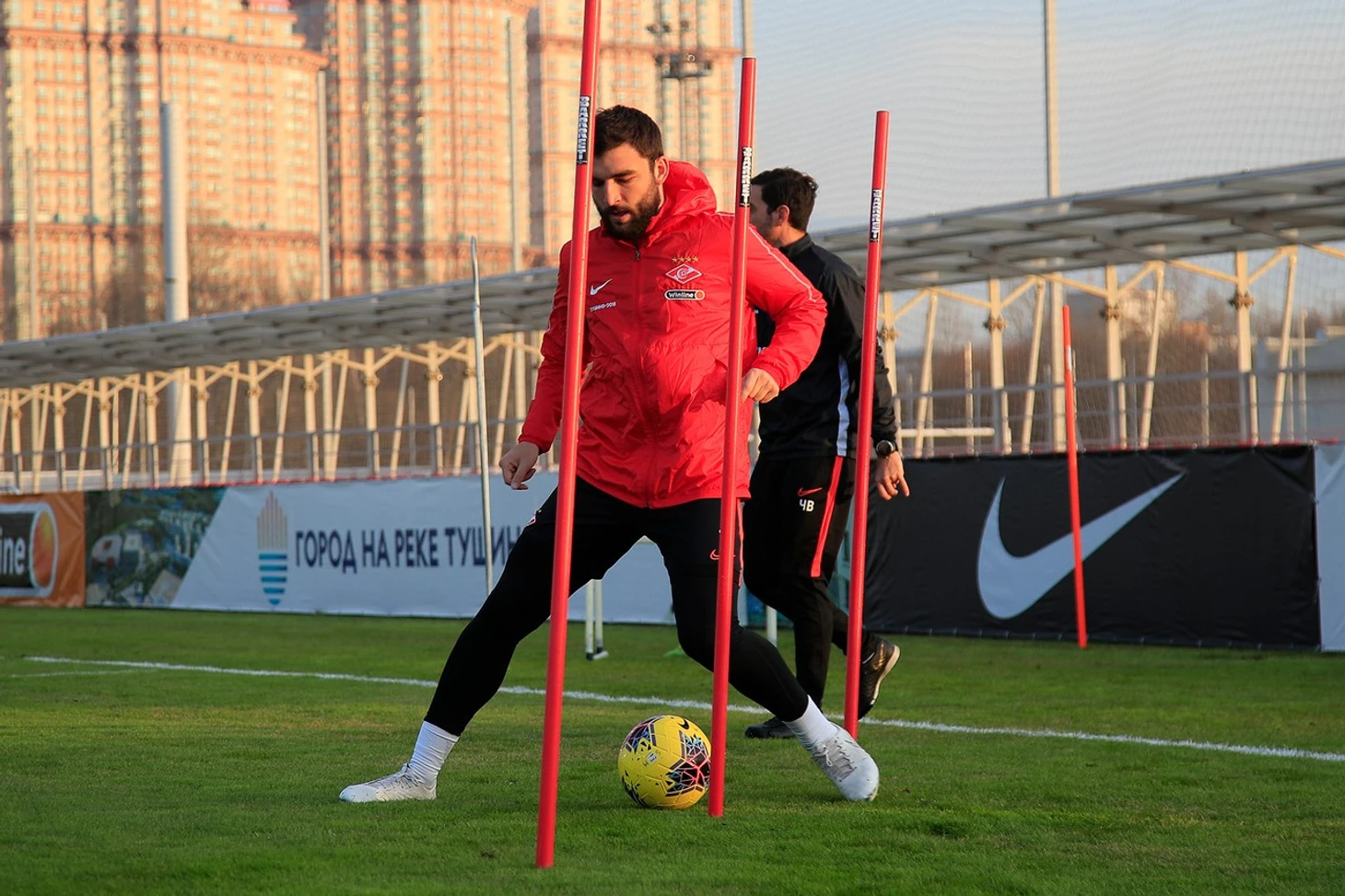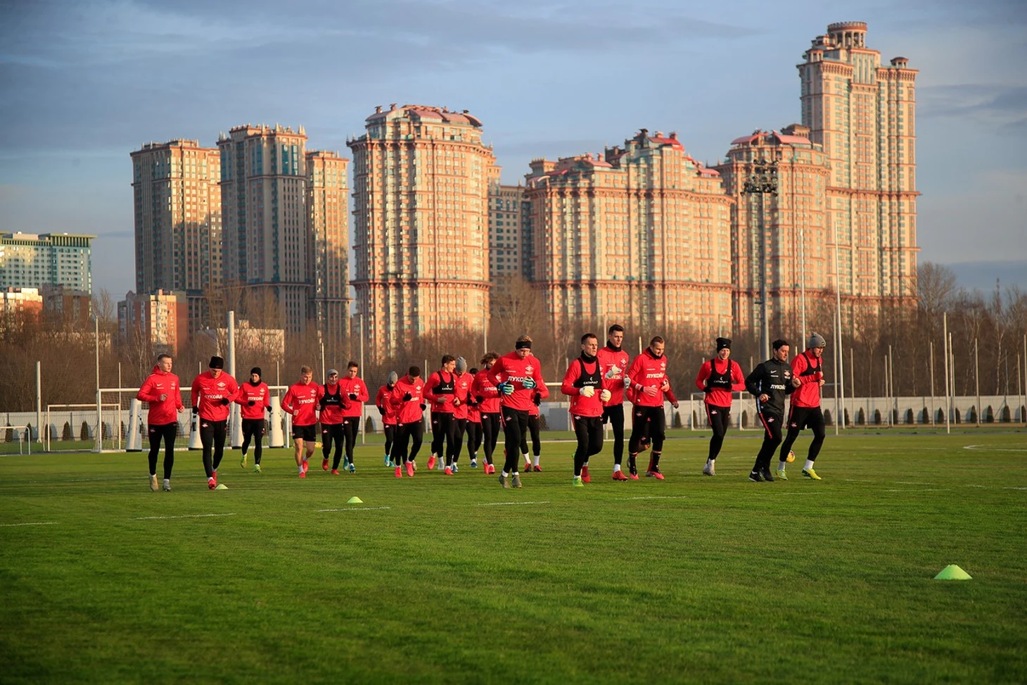 Сегодня в 16:45 началась первая в этом году московская тренировка красно-белых. Футболисты размялись в тренажерном зале с тренерами по физподготовке, а затем вышли на поле базы около «Открытие Арены».