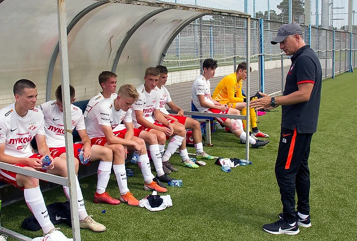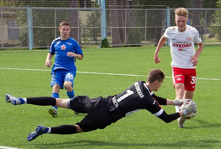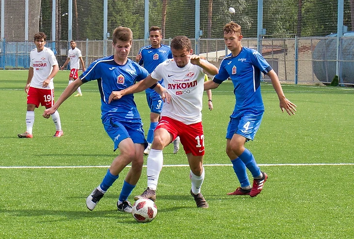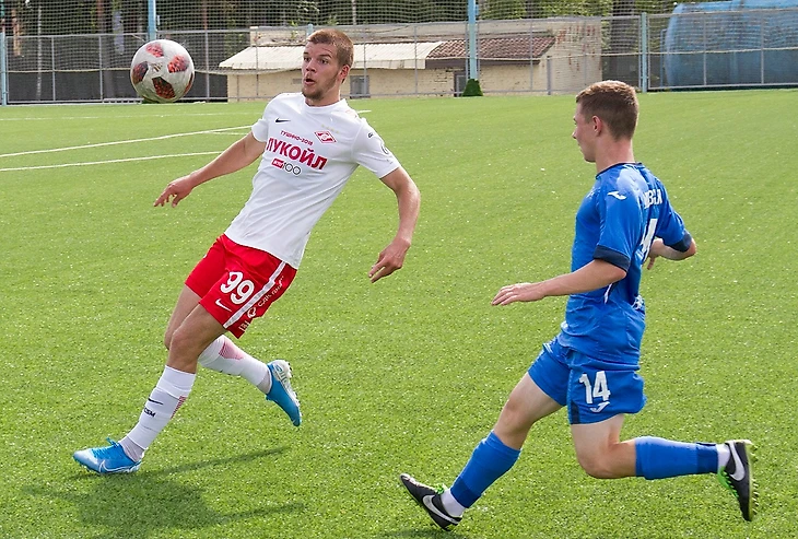 С самого начала встречи команды играли в открытый футбол, забивать могли и те, и другие. Один только форвард «Спартака» Владислав Шитов должен был делать хет-трик в первой половине. Сначала он не реализовал выход один на один, а затем ему дважды не повезло: мяч попадал в штангу и в перекладину. Счет открыл левый атакующий полузащитник красно-белых Никита Трапицын. Он сместился со своего фланга в центр и классно пробил мяч в дальний угол. «Вчера мы посмотрели эпизоды из матчей «Манчестер Сити». Там такие забивает Кевин Де Брейне, и Никита положил идентичный мяч. Получается, подсмотрел у хорошего футболиста», — рассказал главный тренер спартаковского дубля Алексей Лунин.
