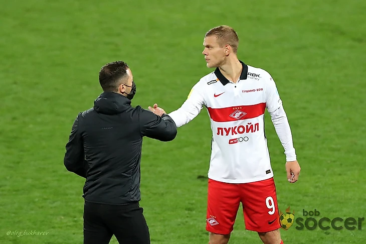 Замысел этот не сработал. С выходом Соболева «Спартак» максимально упростил игру и свалился на бесконечные подачи в штрафную. Соболев боролся за эти мячи, а Кокорин пытался первым сыграть на подборе. Для этого Кокорин старался не отпускать партнера далеко. В результате атака красно-белых очень заузилась, и сгруппировавшиеся защитники ЦСКА сумели сдержать финальный натиск.