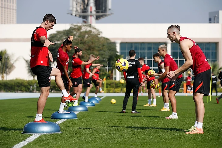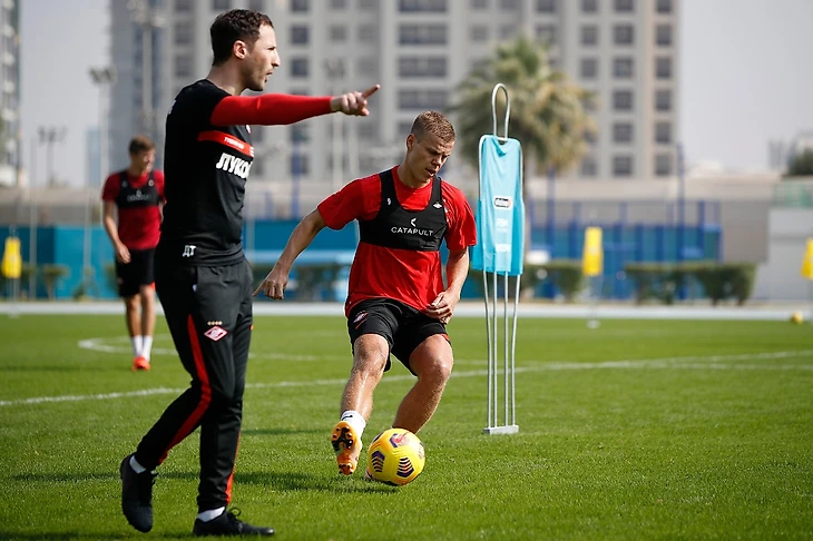 Сегодня утром красно-белые провели первую тренировку в 2021 году. В занятии на поле комплекса Police Club Stadium в Дубае наравне со всеми приняли участие Александр Кокорин и Александр Соболев, не игравшие в концовке первой части сезона из-за повреждений.