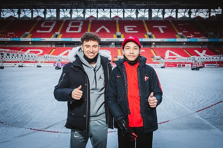Чтобы встреча состоялась, Дима с мамой прилетели в Москву из далекой Якутии, а Джордан поспешил на спартаковский стадион сразу после медосмотра накануне отправления на сборы в Дубай. Ребята встретились как старые приятели и провели день на «Открытие Арене» на позитиве.
