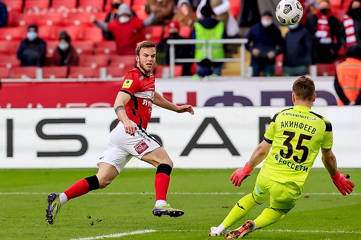 Сразу после перерыва Соболев в упор бил головой, но попал в Акинфеева. Грустить долго не пришлось: вскоре Ларссон сотворил свой шедевр и вывел «Спартак» вперед.