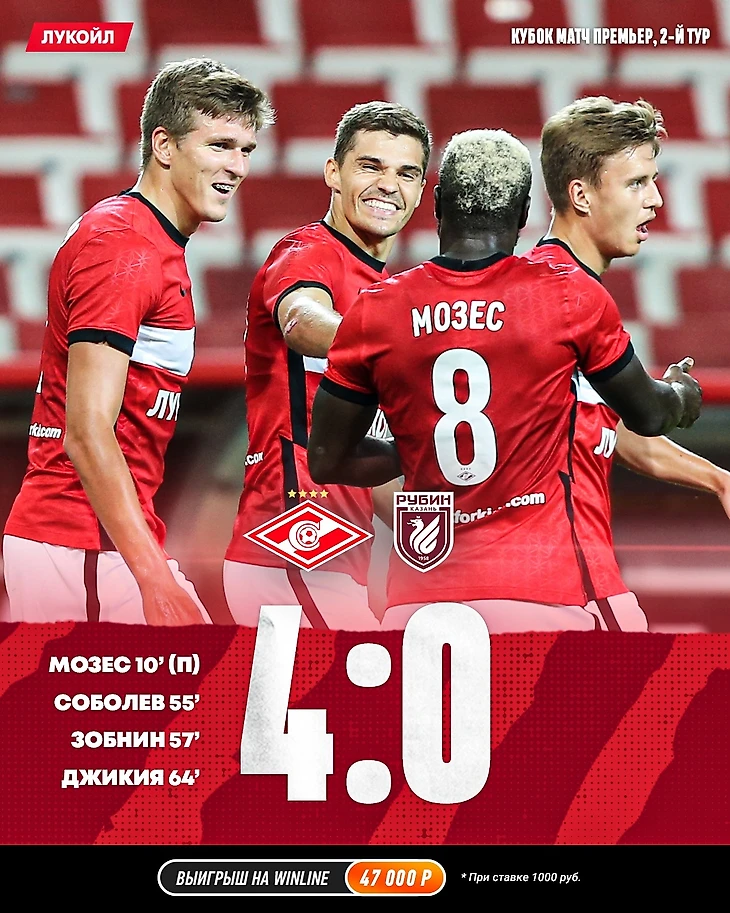 В Москве состоялся матч предсезонного турнира между «Спартаком» и «Рубином». Встреча завершилась разгромной победой красно-белых со счетом 4:0.